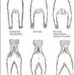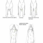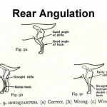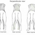 Las articulaciones femoro-tibio-rotulianas (rodillas) han de estar bien anguladas y los corvejones descendidos. Los corvejones juntos son altamente indeseables.